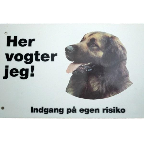 Her vogter jeg! Skilt med Sandfarvet Leonberger – Majestætisk og stærk beskytter